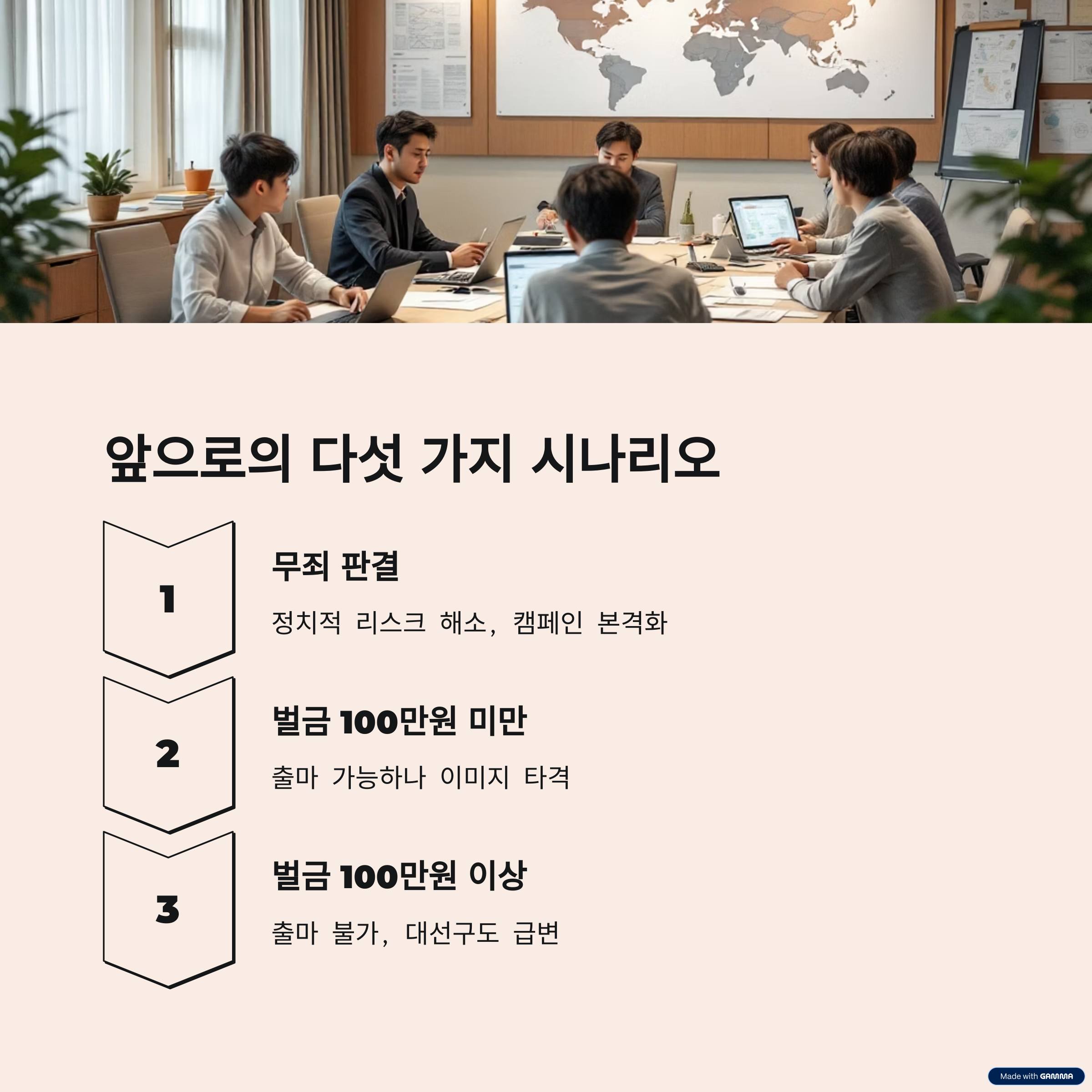 하지만 이게 끝은 아니죠. 판결 하나에 따라 출마 자체가 무산될 수 있는 상황인 만큼, 정치적으로는 엄청난 불확실성이 따라붙는 셈입니다.